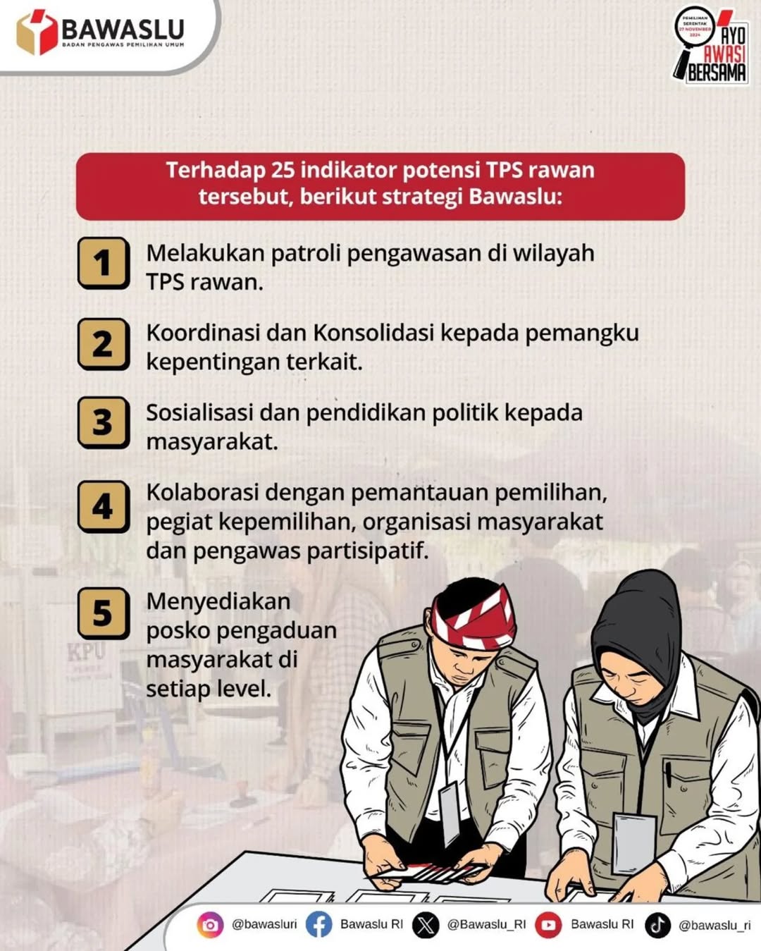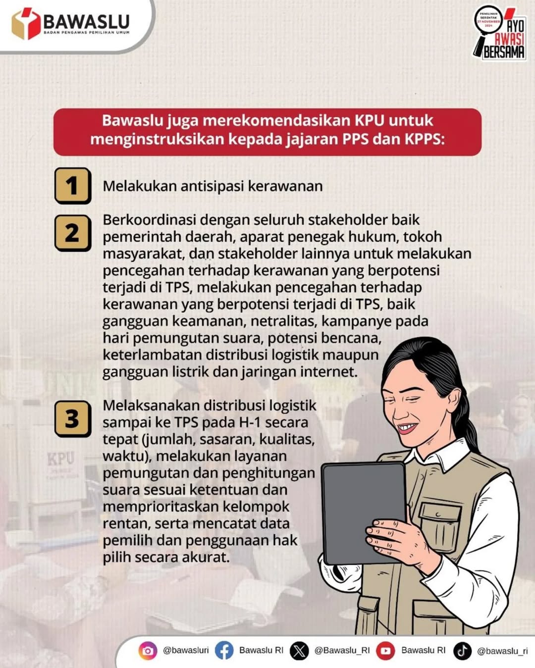Hal ini bertujuan untuk mengantisipasi gangguan dan hambatan di TPS pada hari pemungutan suara.