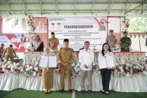Acara penandatanganan berlangsung di Lapangan Futsal Kawasan Perkantoran Panango, Kecamatan Bolaang Uki, pada Selasa, 26 November 2024.