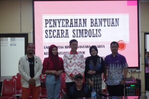 Acara penyerahan bantuan turut dihadiri Asisten III Sekda Bolsel, Rikson Paputungan SPd, MPd, Kepala Dinas Koperasi UKM Transmigrasi dan Tenaga Kerja, Ramli Abdul Madjid SPd, serta perwakilan dari Universitas Bina Nusantara Jakarta.