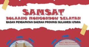 Selengkapnya »BUMANTARA.NET, BOLSEL – Sistem administrasi manunggal satu atap (Samsat) Bolaang Mongondow Selatan (Bolsel) membuka pelayanan sampaik akhir pekan. Koordinator Samsat Pembantu Bolsel, Kaharudin Mokoginta …